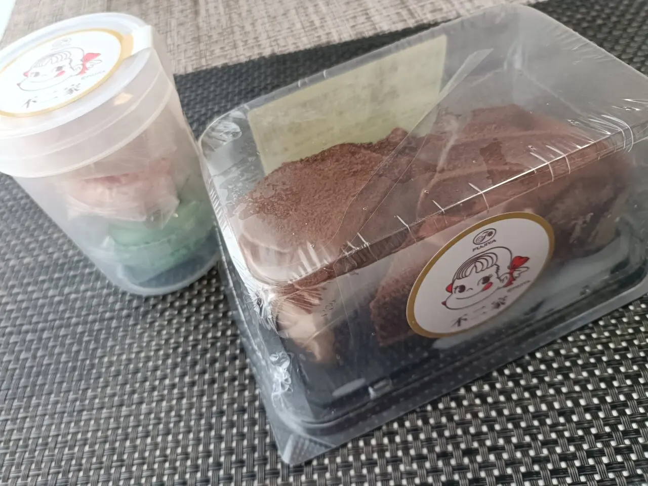ケーキやマカロンなどのスイーツを販売するもののようですが、よく見てみると『不二家』と書いてあります。ケーキは「ショートケーキ」、「ハイカカオチョコレートケーキ」、「マロンモンブラン」の3種類。2ピース入りで500円です。