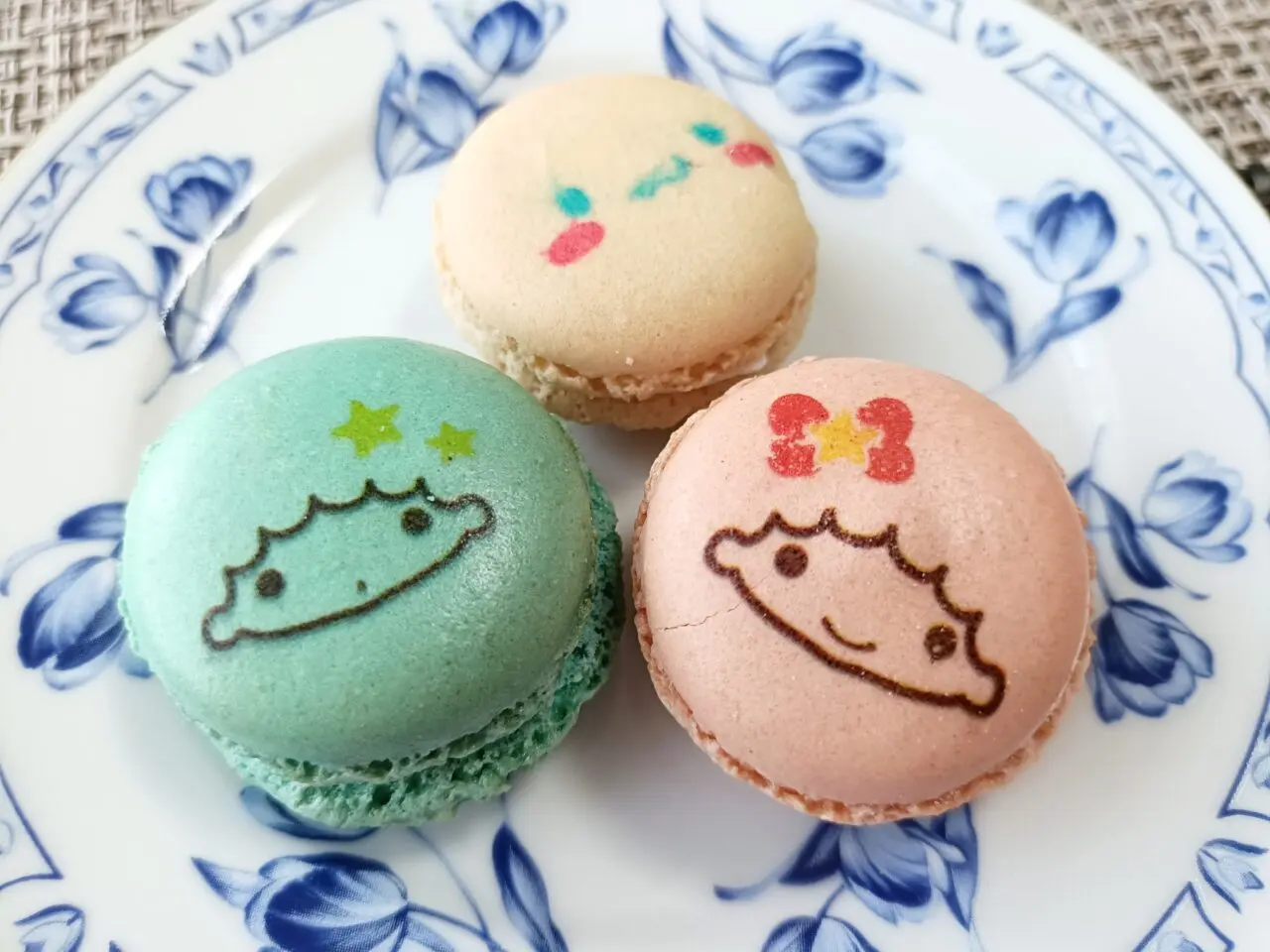 こちらはバニラ・ライチ・ストロベリーチーズケーキのマカロンです。見た目にとてもかわいくて目を引きますね♪私は水色のライチ味をいただきましたが、さっくり、もっちりとした食感で、ライチのフレーバーが爽やかで美味しかったですよ。