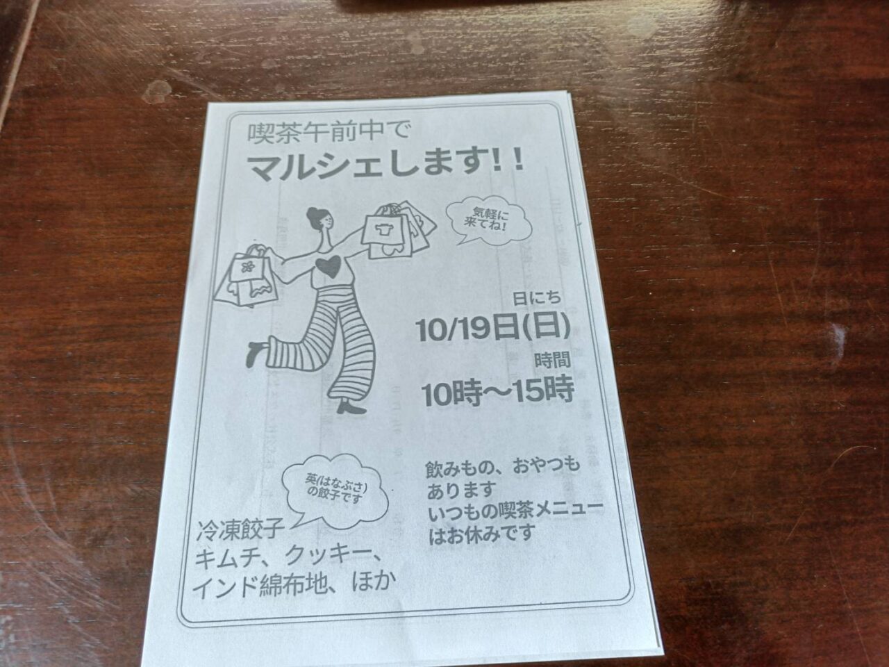 2025年10月19日(日)10:00~15:00、『喫茶 午前中』で初のマルシェが開催されます♪当日はいつもの喫茶メニューはありませんが、気軽に食べられるおやつや飲み物、食卓やお土産に嬉しい「英(はなぶさ)」の冷凍餃子、「たんぽぽ」の本格キムチ、「のぞみの里」のお菓子など、日常にちょっとした楽しみをくれる品々が準備されるそうですよ。