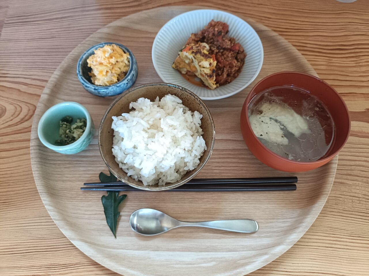 訪れた2025年10月8日(水)のメニューはこちら↓。パンや手作りの花巻がせいろで蒸されてふわふわ、ふかふか!おかずはどれも丁寧に心を込めて作られているのを感じる、優しい味わいでした。