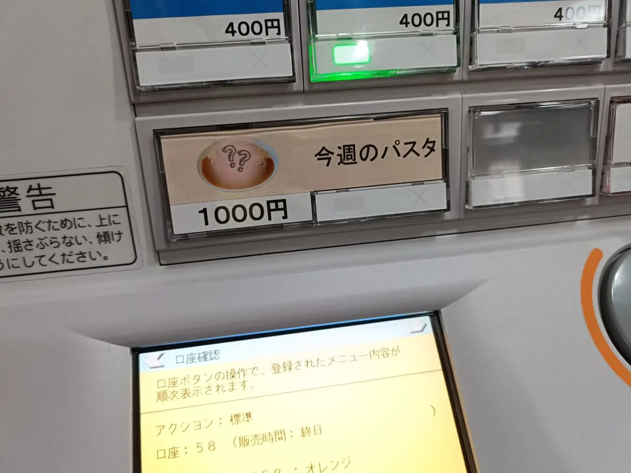 さらに、券売機の一角に「今週のパスタ(1000円)」のボタンを発見。スタッフの方によると、今後は季節の食材を使った限定メニューも登場予定とのこと。「きのこ」や「揚げナス」など、秋らしいあんかけスパを考えられているそうですよ。