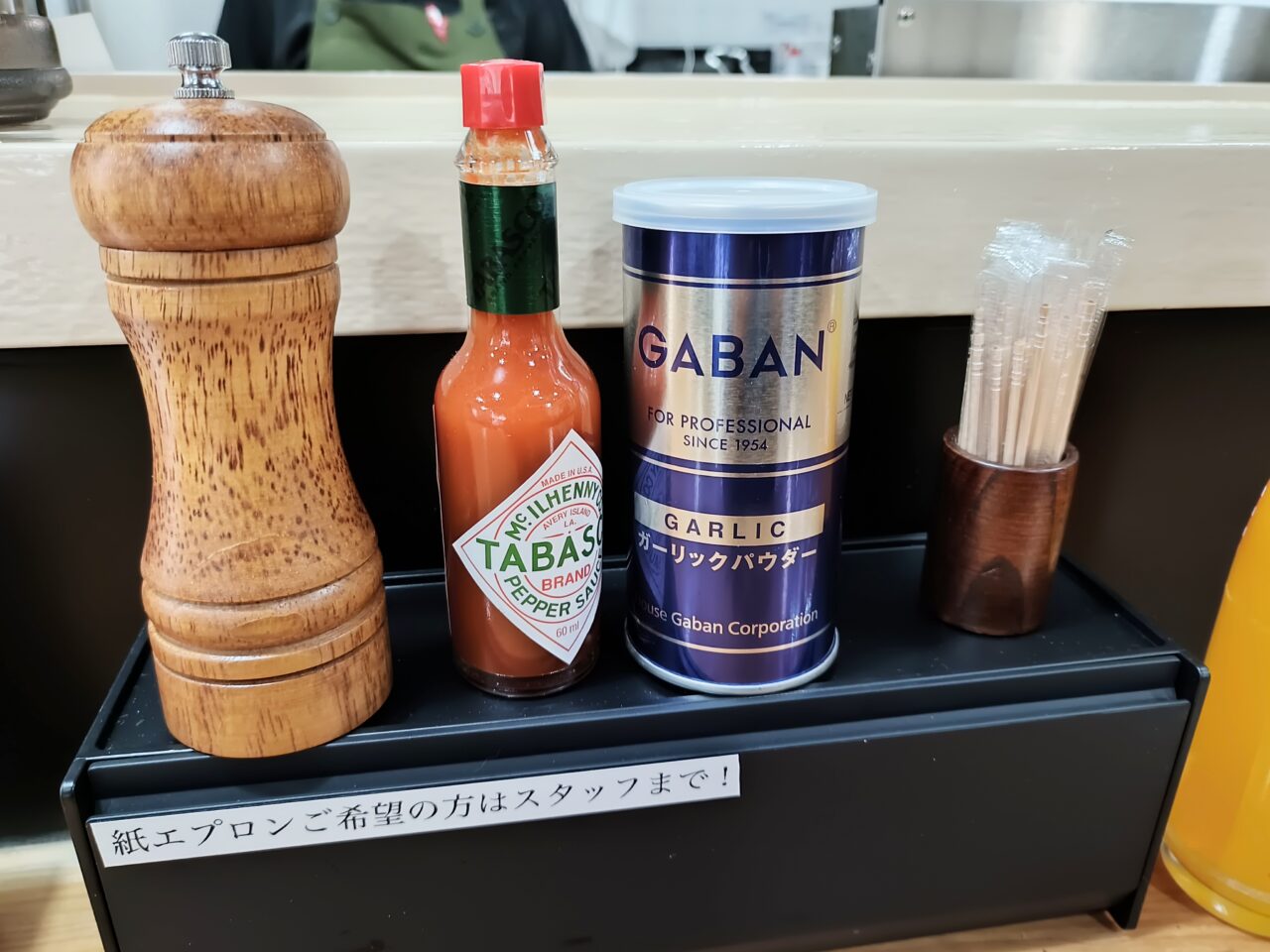 さらに毎日5食限定で、なんと1,000円引きの1,400円で楽しめるとのこと。OPEN時間の11:00からは、争奪戦になりそうですね。あんかけスパは、モチモチの麺にピリッとスパイシーなとろとろ餡がからみ、口に運ぶ手が止まらない美味しさ。スパイシーさは一般的なあんかけスパよりも少し控えめで、卓上の黒コショウ・タバスコ・ガーリックパウダーを足して自分好みにアレンジするのもおすすめです。