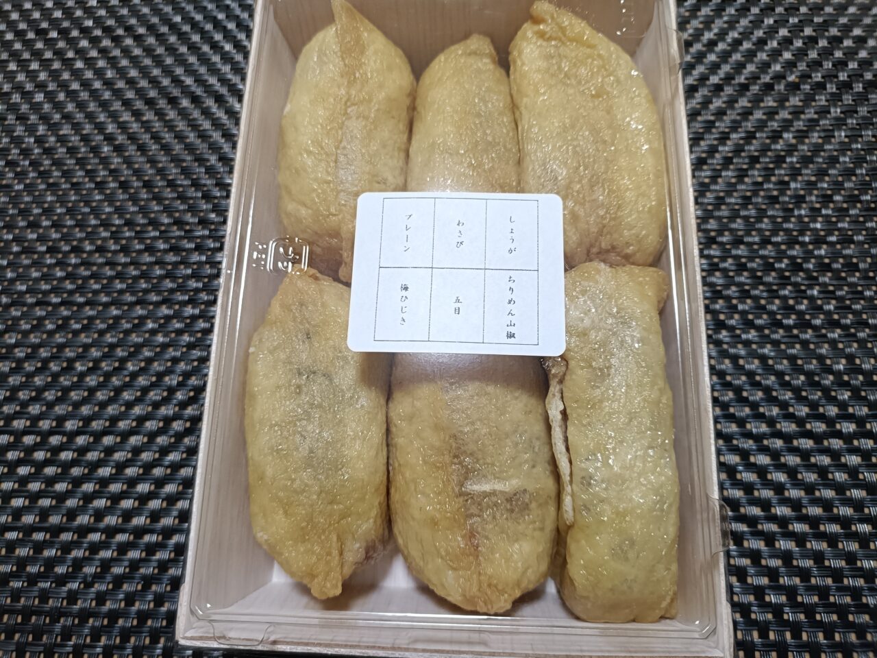 今回は、6種類の味がセットになった詰め合わせを購入。定番のいなりずしをはじめ、具材入りのものなどが楽しめ、ひとつひとつに個性がありながらも、全体としてバランスの取れた味わいです。見た目以上に食べ応えがありますが、重たさはなく、それぞれの味を楽しんでいるうちにパクパクとあっという間に食べてしまいました。