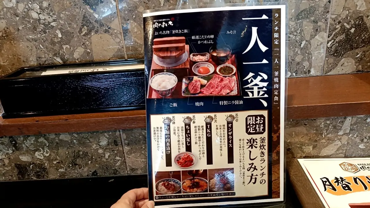『肉のよいち』の特徴は、一人ひと釜で提供される炊き立てごはん。ランチも同じく、焼きたてのお肉と一緒に味わうことができます。今回は、「月替わり焼肉御膳」を注文しました。