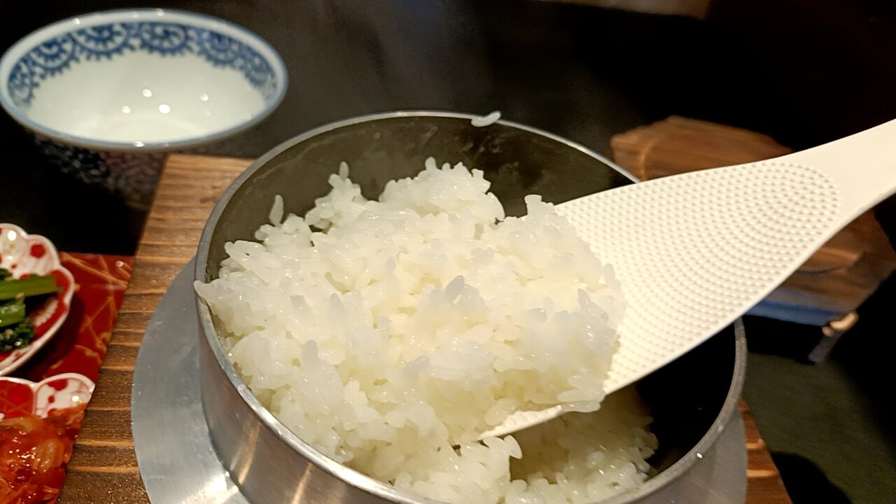 また、香ばしく焼いたお肉と共にいただく、ツヤツヤ炊き立てのご飯は格別です。現在は新米での提供ということで、さらに美味しさが際立っていました。