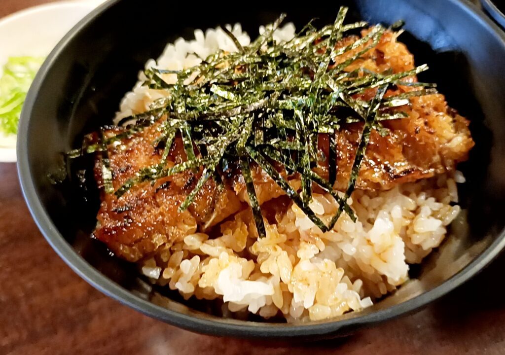 丼が運ばれてくると、香ばしい香りがふわり。表面はパリッと香ばしく焼き上げられ、身はふっくら。甘辛のタレがごはんにしっかりと染み込み、ひと口ごとに旨みが広がります。