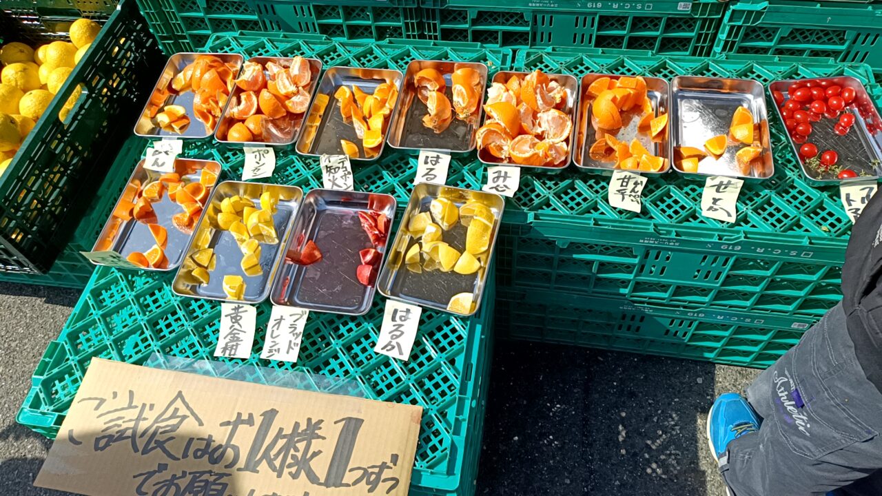会場には約10種類以上の柑橘類の試食&販売が並び、気になる味を試しながら選ぶことができました。
