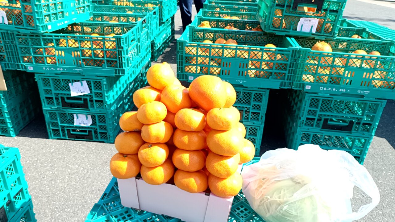 この日訪れた会場には、コンテナいっぱいの柑橘類がずらり!