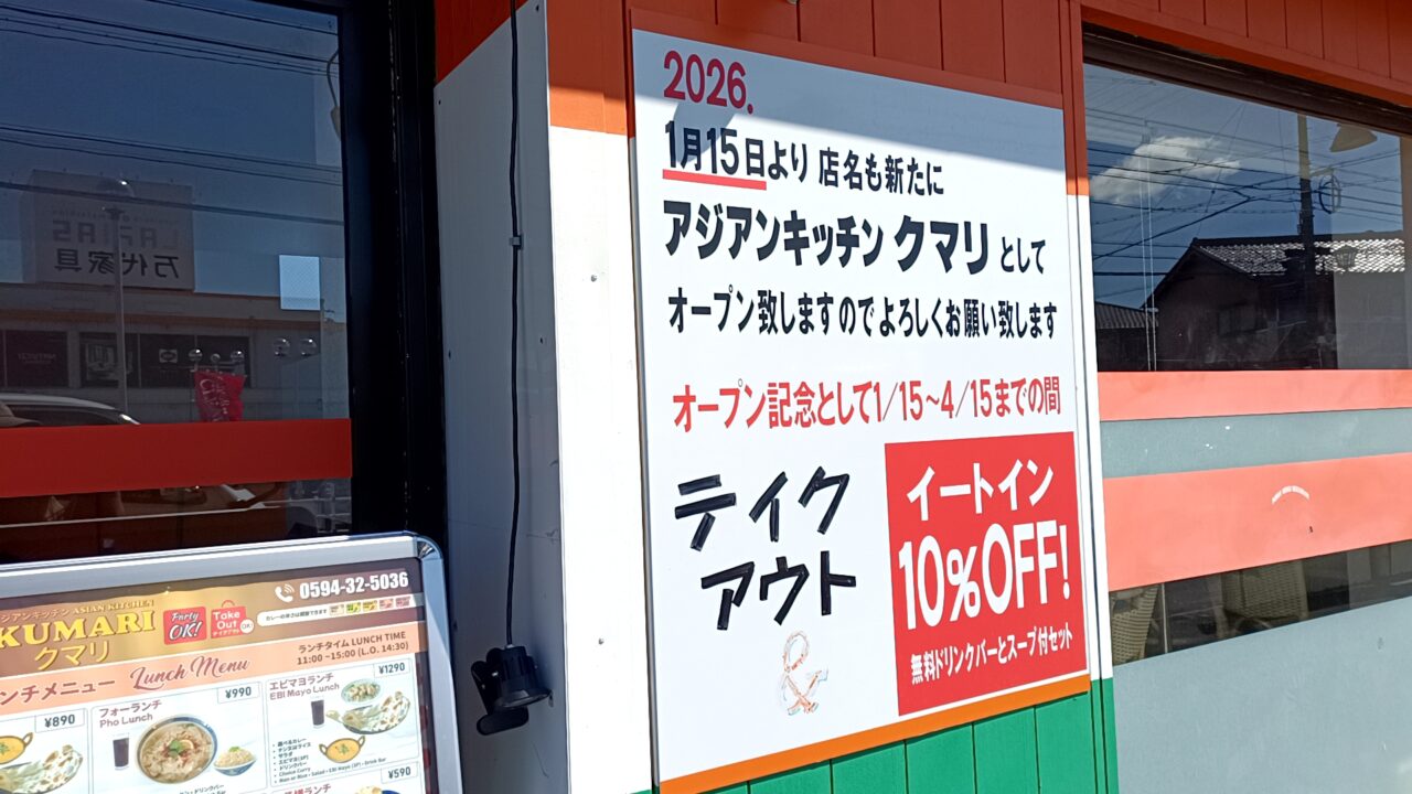 【桑名市】4/15日までオープン記念10%割引実施!!アジアンキッチン『クマリ』でドリンクバー付きのお得なランチ♪