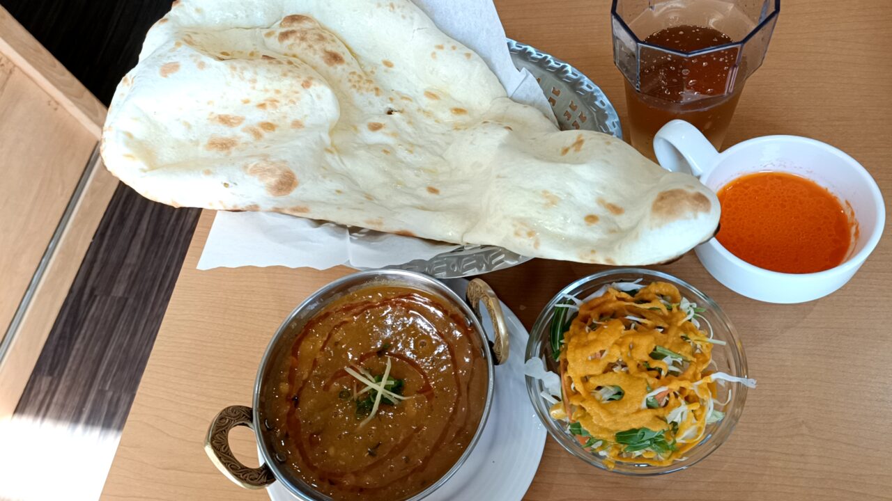 今回は、「ハロランチ 890円(税込)」をいただいてきました。ふわふわモチモチの大きなナンが印象的です。