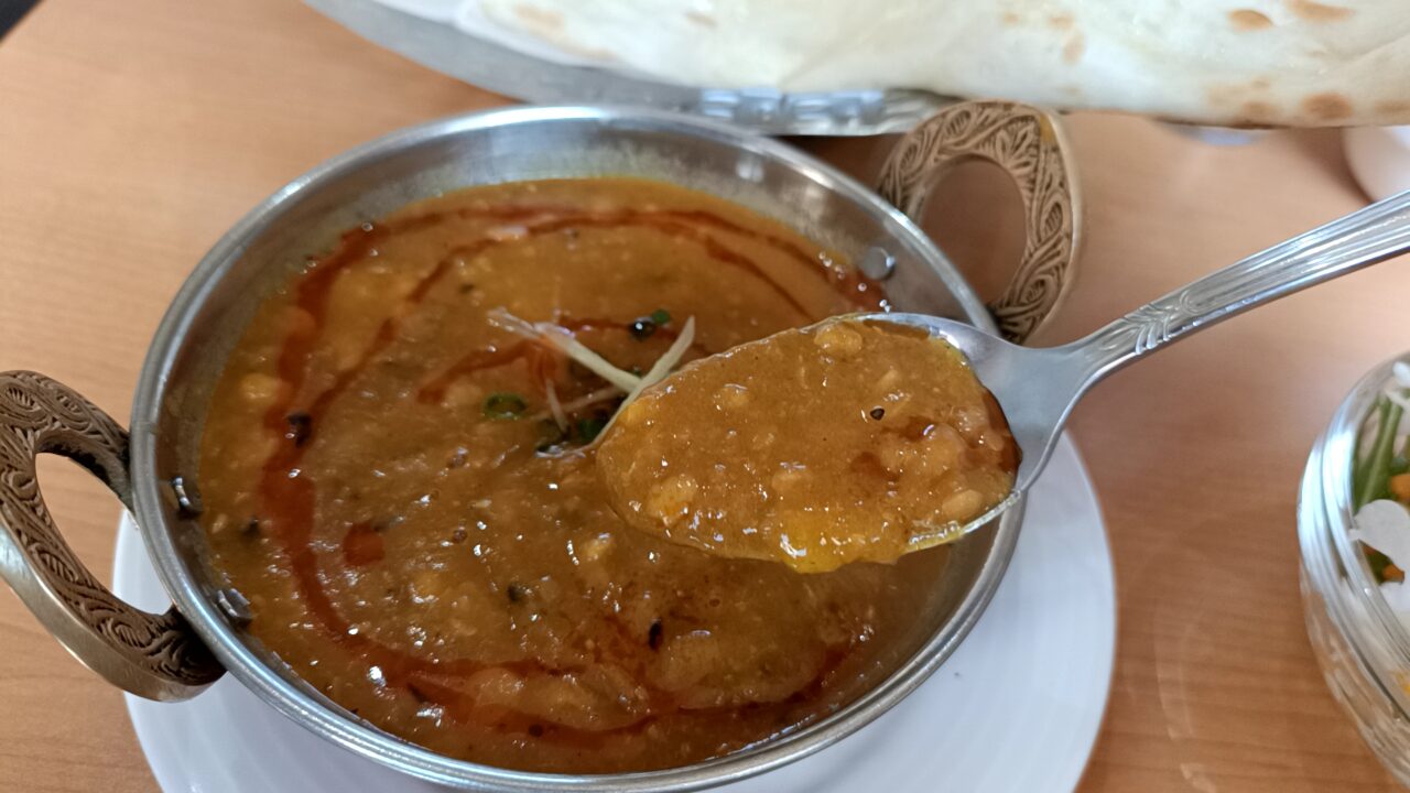 今回は「豆カレー」をチョイス。柔らかく煮込まれた豆がたっぷり入っており、豆のコクと旨みを感じられる美味しいカレー。焼きたてのナンとの相性も抜群でしたよ。