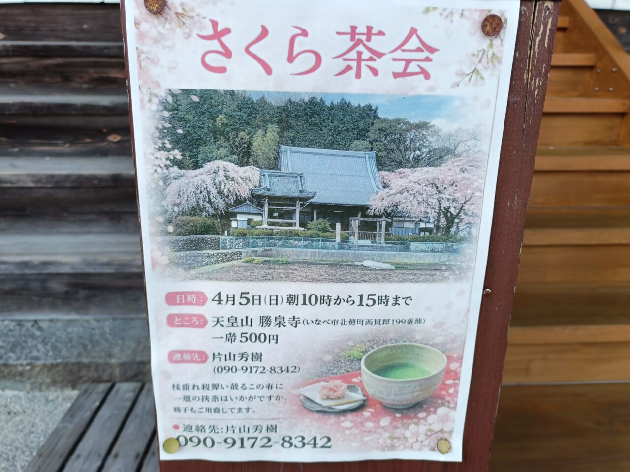 また、境内に掲示されている案内によると、2026年4月5日(日)には「さくら茶会」が開催予定。時間は10時から15時までで、一席500円で楽しめるとのことです。