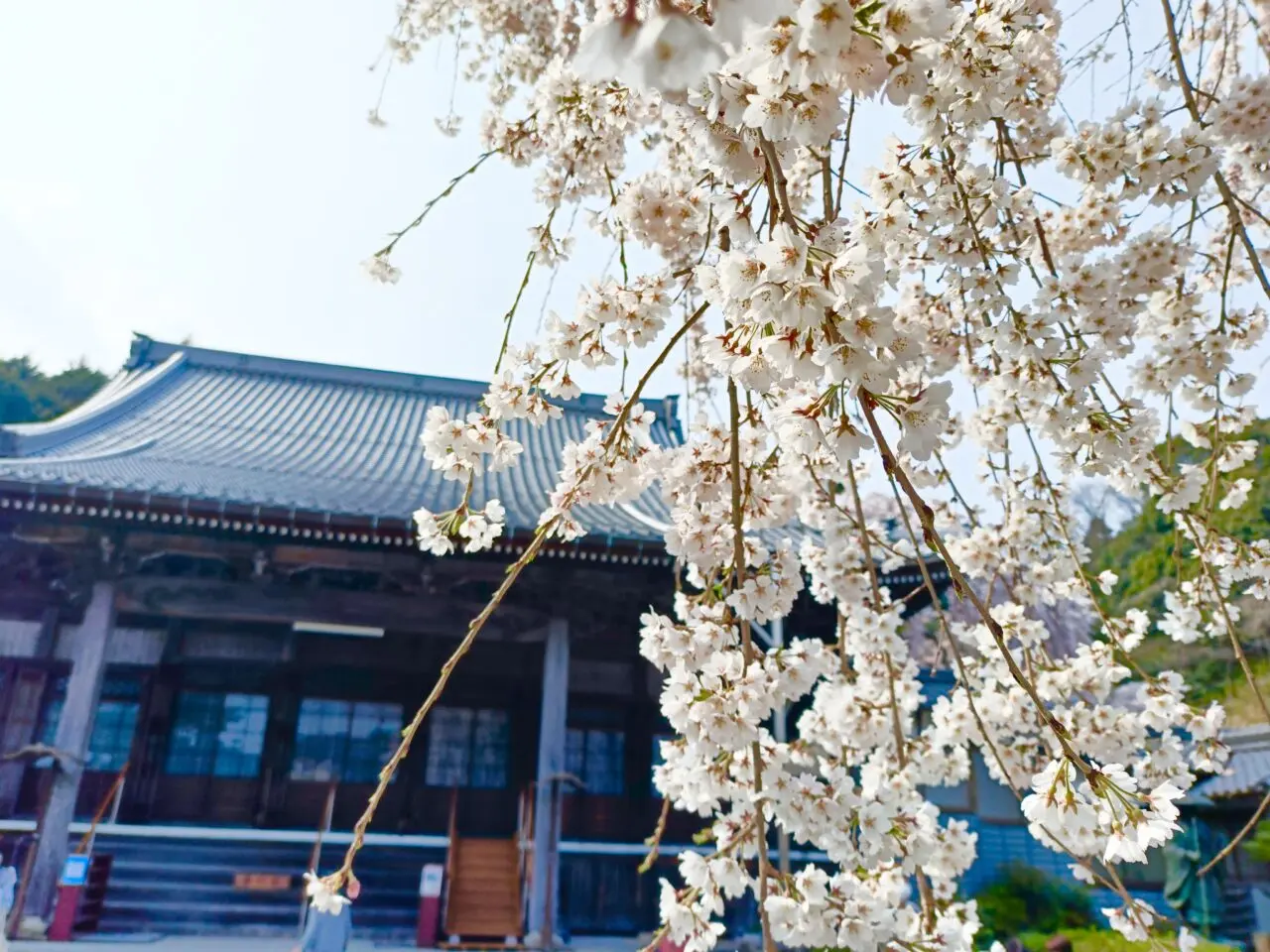 2026年3月28日に訪れたところ、境内には満開のしだれ桜が広がり、やわらかな春の景色に包まれていました。
