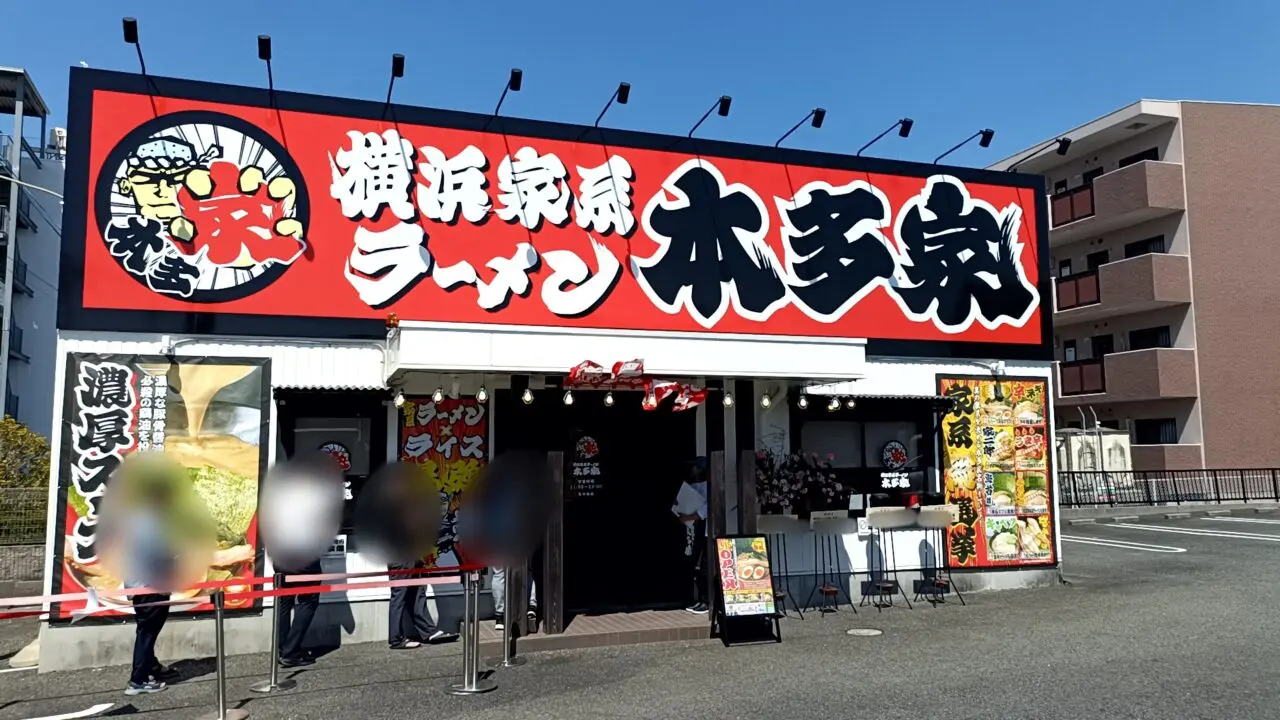 2026年4月15日、桑名市大福に新しくオープンした『横浜家系ラーメン 本多家』を訪れました♪赤い大きな看板が目印で、すでに多くのお客さんで賑わっていました。