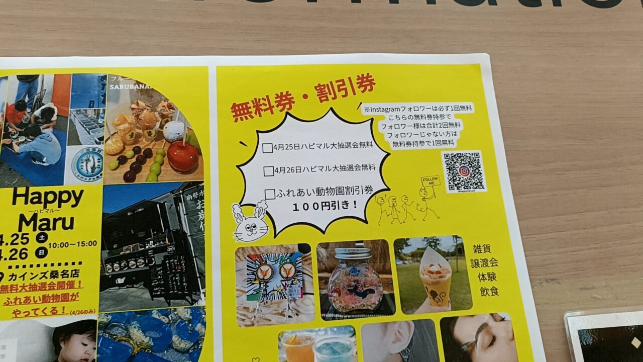 また、チラシにはお得な特典情報も掲載されています。Instagramフォローで抽選会が無料になったり、割引券が利用できたりと、嬉しいサービスも♪