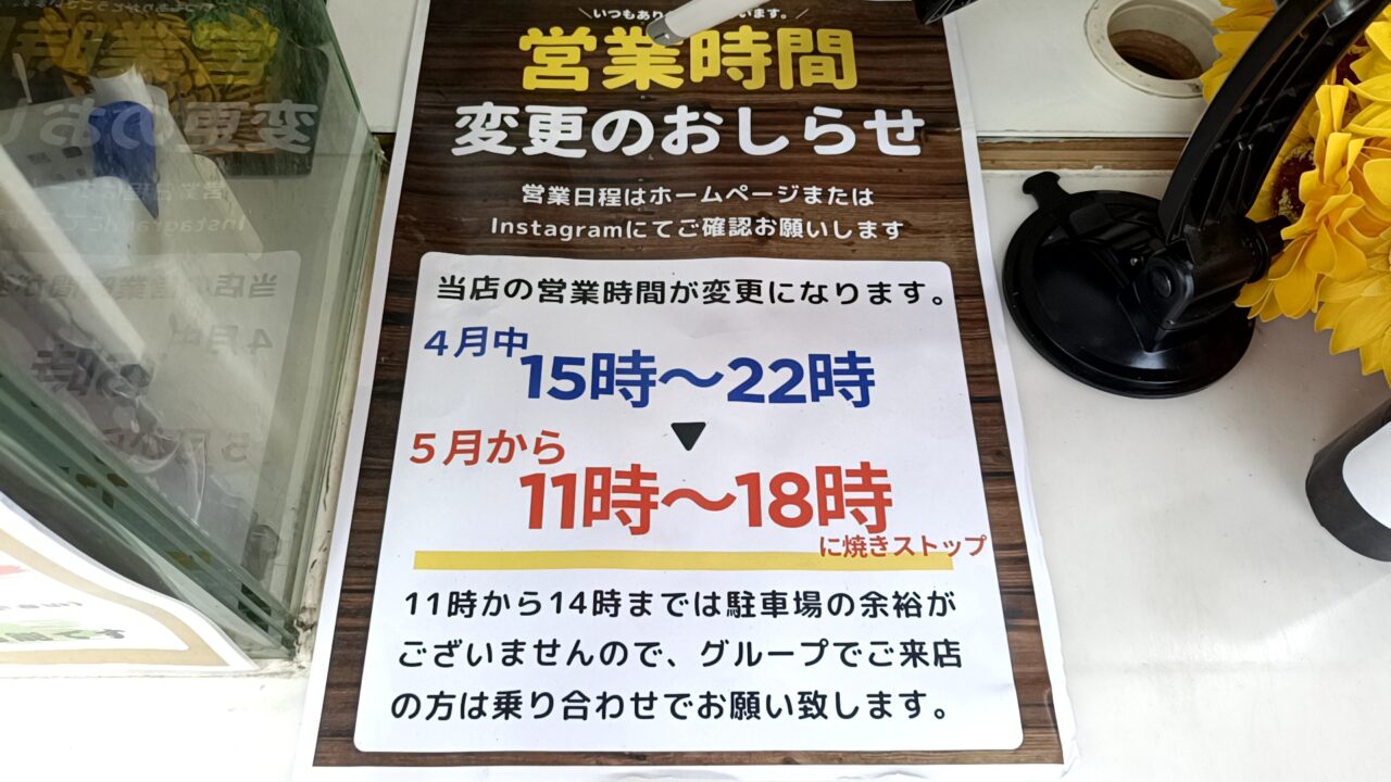 営業時間は、4月中は15時〜22時、5月からは11時〜18時に変更予定とのこと。お昼の時間帯は駐車場が混み合うことが予想されるので、複数人で行く場合は乗り合わせがおすすめです。営業日などの最新情報はInstagramで発信されているので、気になる方はチェックしてみてくださいね。