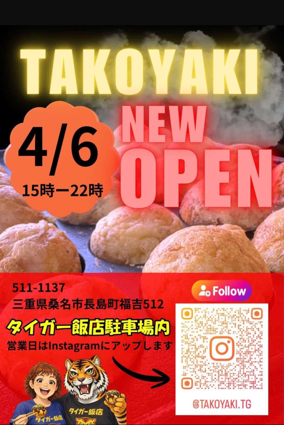 長島町の人気中華店『タイガー飯店』の駐車場内に、たこ焼き屋さんが新しくオープンしました♪
